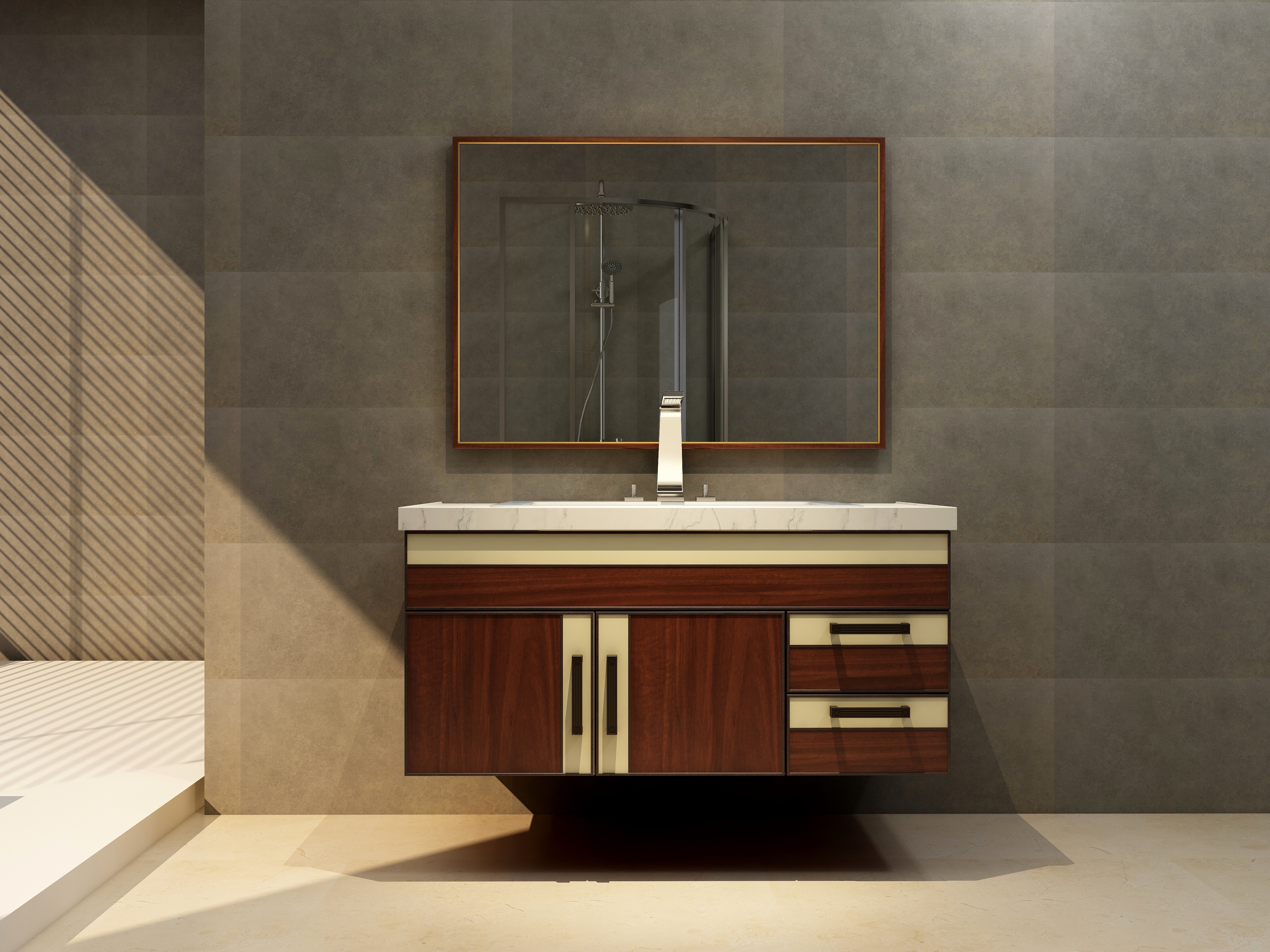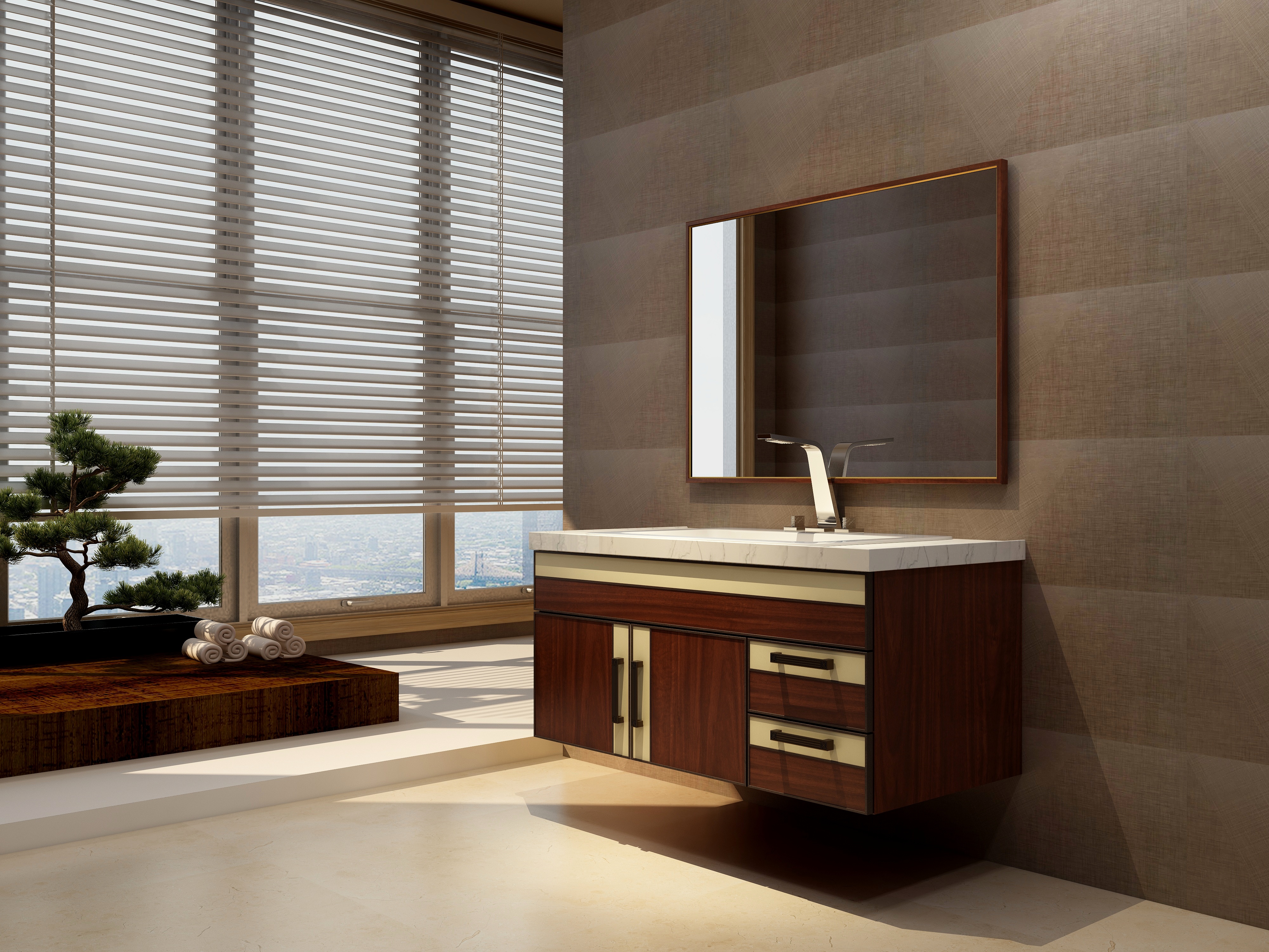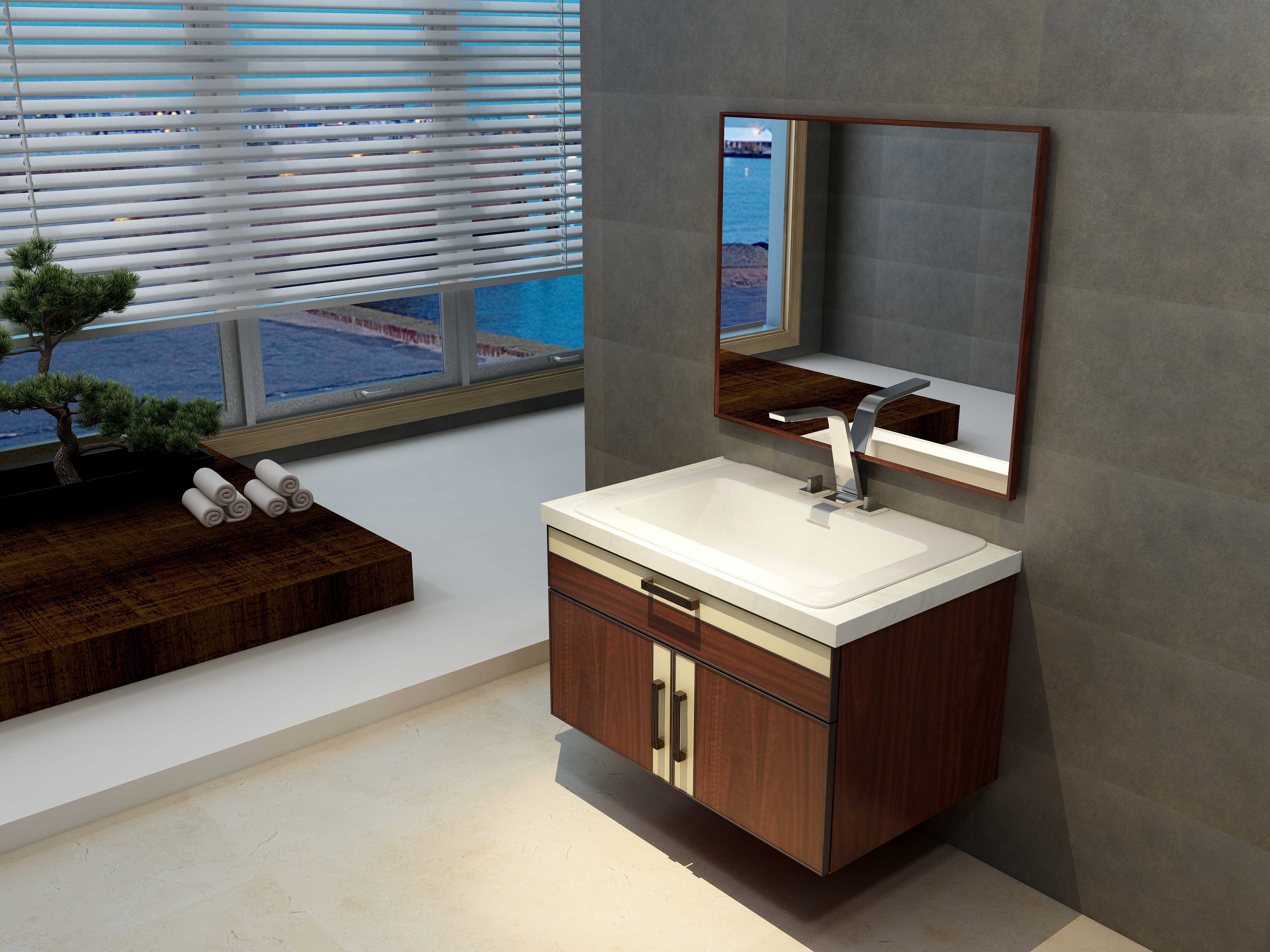 浴(yu)室柜的(de)一大(da)特點(dian)就(jiu)是形式簡(jian)(jian)潔,它的(de)表現方式體現在浴(yu)室柜設計大(da)多(duo)為簡(jian)(jian)單(dan)的(de)直(zhi)線,橫平豎直(zhi),減少不必(bi)要的(de)裝飾線條,用簡(jian)(jian)單(dan)的(de)直(zhi)線強調空(kong)間的(de)開闊(kuo)感。大(da)多(duo)浴(yu)室柜品(pin)牌都(dou)選擇直(zhi)線型設計。