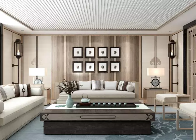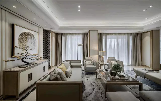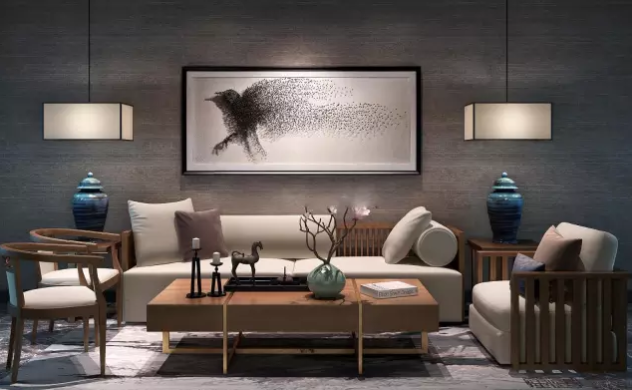 新中式風格的墻面設計充分演繹了中式傳統美學的內涵與當前時代背景下人們的審美取向,因而更好地表現了現代家居的美學精神,體現出人們對中式傳統事物的理解與追求。