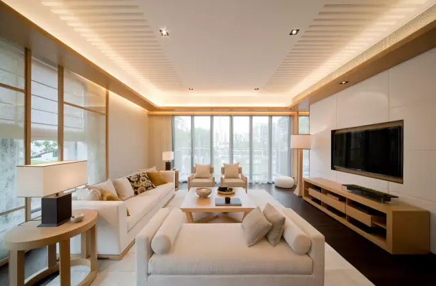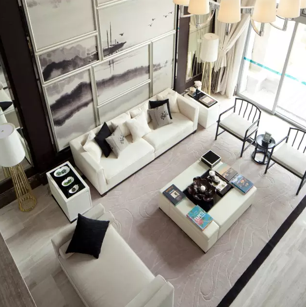 在造型、材質、家具、軟飾等各種不同空間元素的運用上巧妙融合,一個高貴、大氣的家居氛圍就能充分展現出現代居室的時尚感。