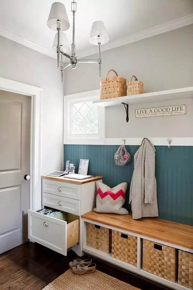 一進門就是入戶玄關,在玄關處打一柜方便存放鞋子、鑰匙、包包等,如果空間足夠還能存放一些其他生活物品。這樣玄關處就變得整潔了。