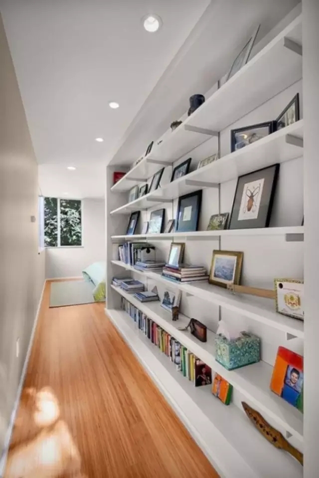 壁柜是利用墻壁的縱向空間,做個壁柜可以存放大量的東西。而走廊空間一般都比較尷尬,要是能改造上一排收納柜,對于小戶型來說簡直就是救星了!
