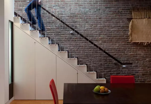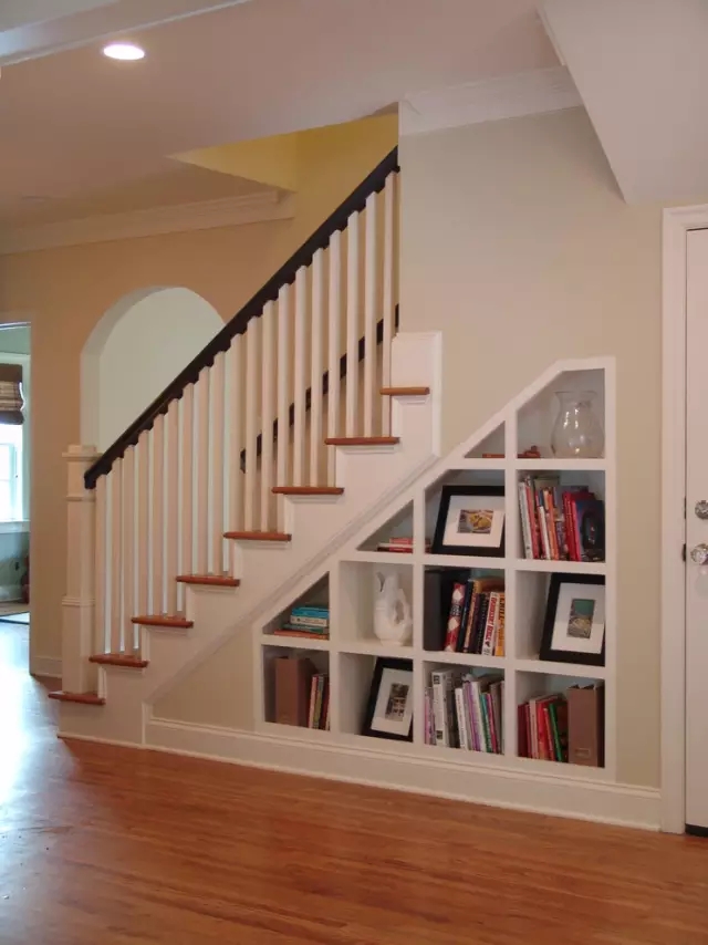 為了合理應用每一寸空間,樓梯底也逐漸進入人們的視線。這塊往日如雞肋的空間現在逐步被人改造成各式儲物間,發揮了巨大的作用!樓梯可以在梯子上或者墻壁上做儲物柜,不影響樓梯使用。