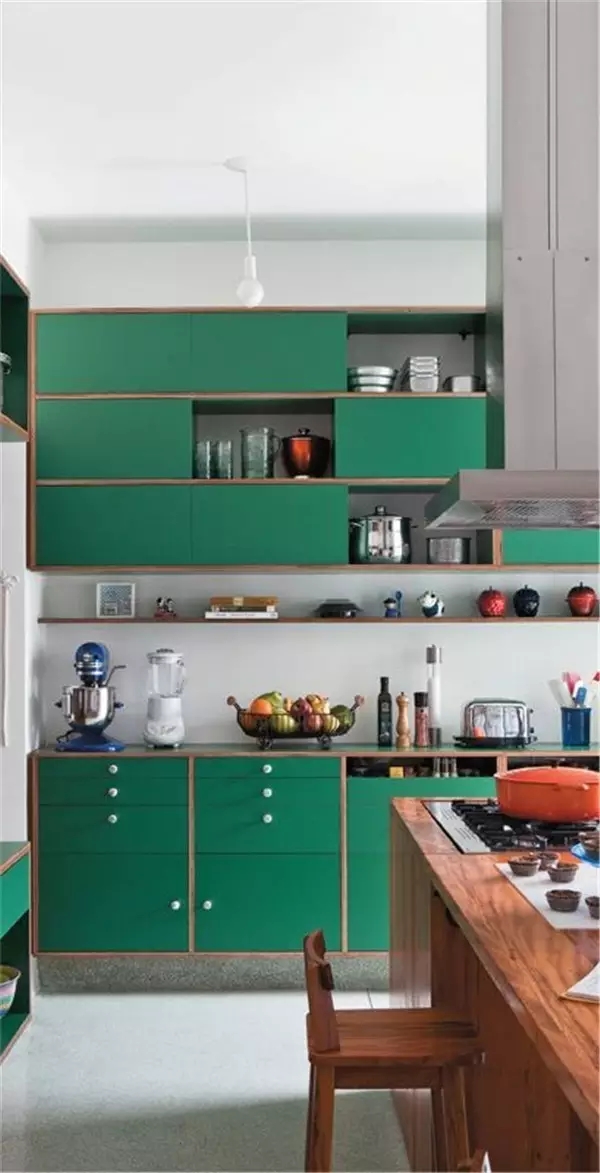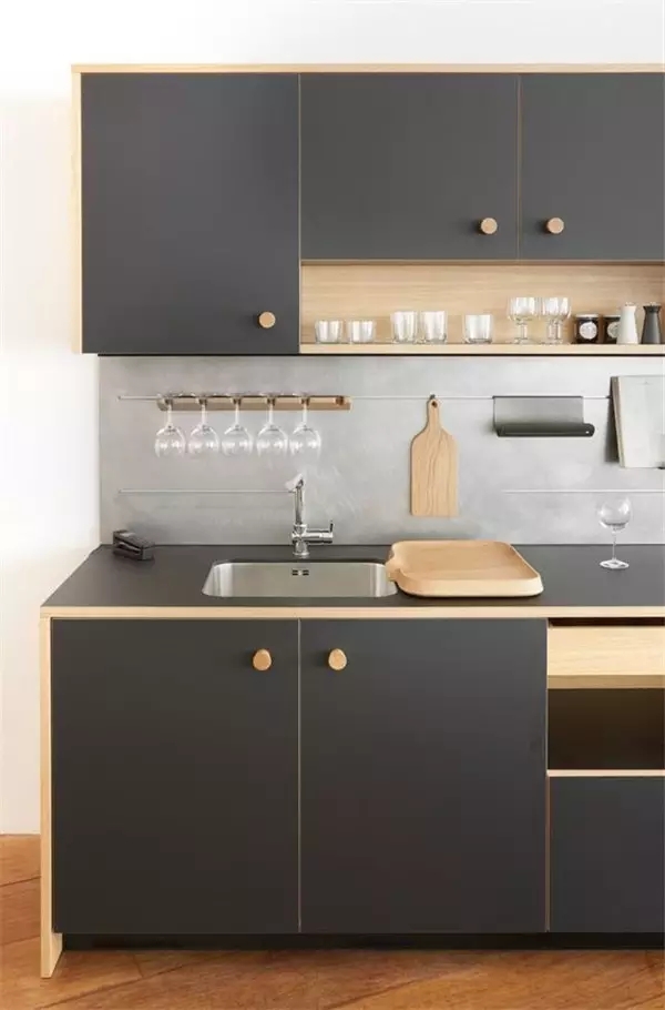 櫥柜作為存放廚具、做飯的操作平臺,其設計在顧及美觀的同時還要考慮主人的使用習慣。以便達到在美觀的基礎上讓烹飪者在愉悅的氛圍中做飯炒菜。