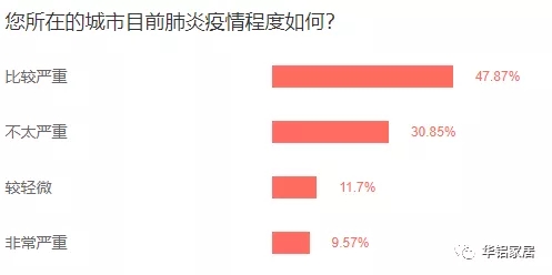 一、調查顯示近半數來自華北地區,近半成受訪者表示自己所在的城市疫情比較嚴重,有超過三成網友認為此次疫情在3月可能會有明顯好轉。