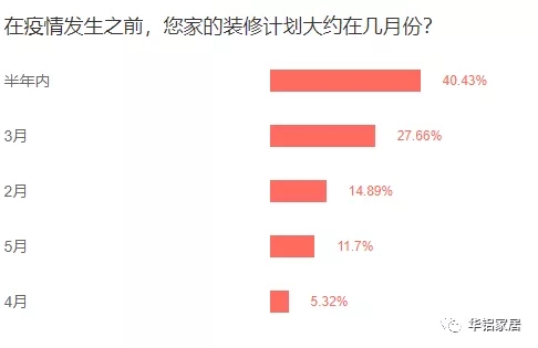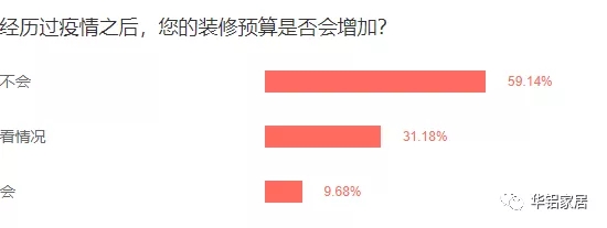 二、調查顯示,有近42%的家庭表示原計劃在2月或3月有裝修需求,裝修預算在10萬以上的家庭占了七成以上,雖然目前疫情仍然比較嚴重,但是只有34%的家庭表示會放棄原來的裝修計劃。