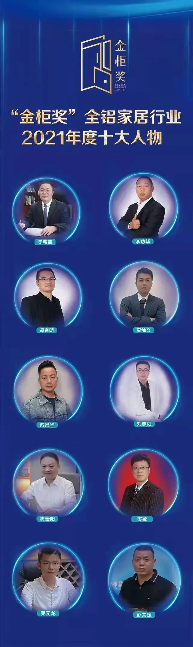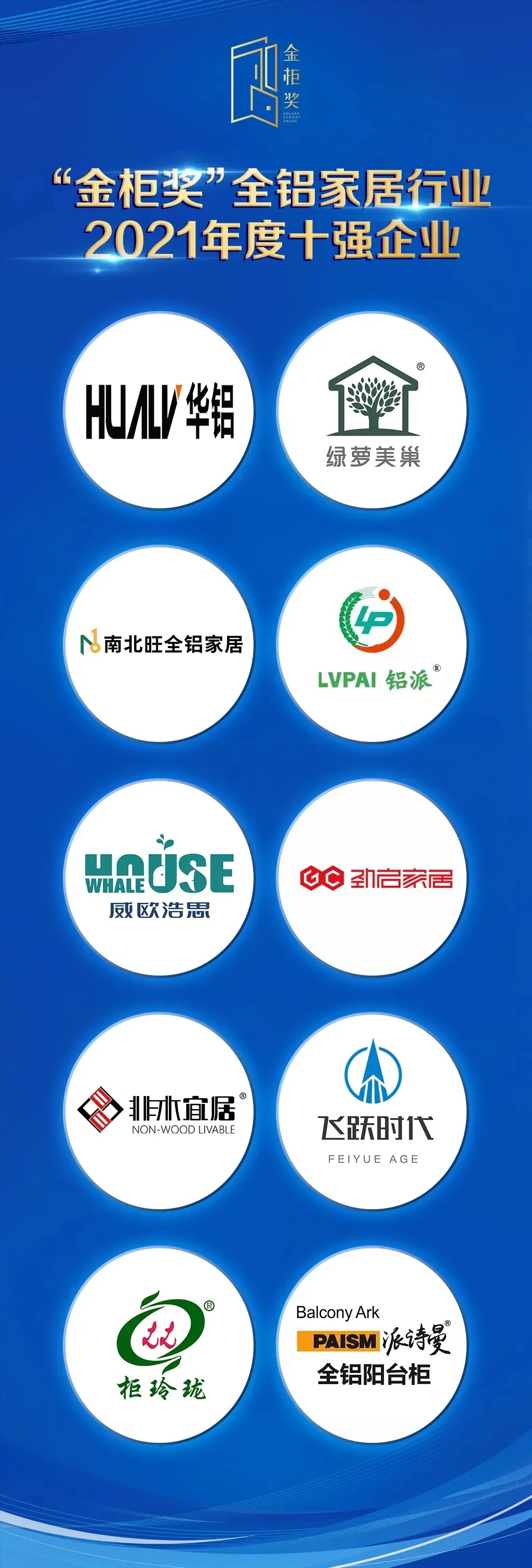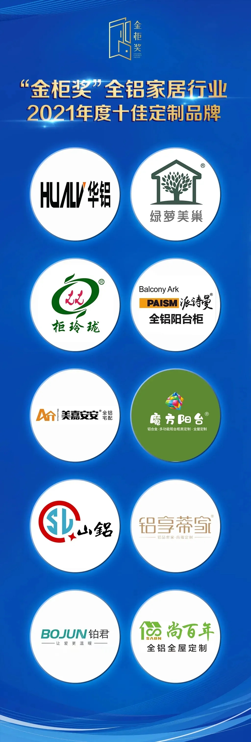 2022年1月20日,由《全鋁家居商訊》新媒體舉辦的“金柜獎”全鋁家居行業2021年度評選活動結果揭曉,經過歷時一周的網絡投票和10位評審專家的考評評審,華鋁家居從34個參評品牌和個人中脫穎而出,榮獲“金柜獎”全鋁家居行業2021年度十大人物、“金柜獎”全鋁家居行業2021年度十強企業、“金柜獎”全鋁家居行業2021年度十佳定制品牌榮譽。